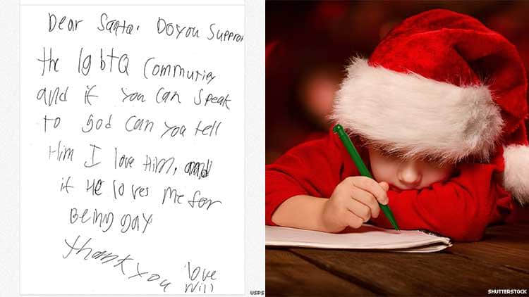 网友哭了。小男孩写给圣诞老公公的一封信:我是同性恋,上帝会爱我吗?